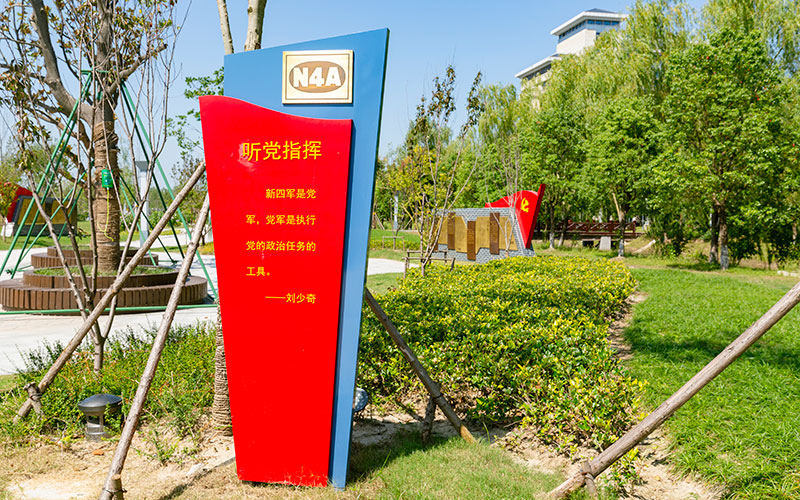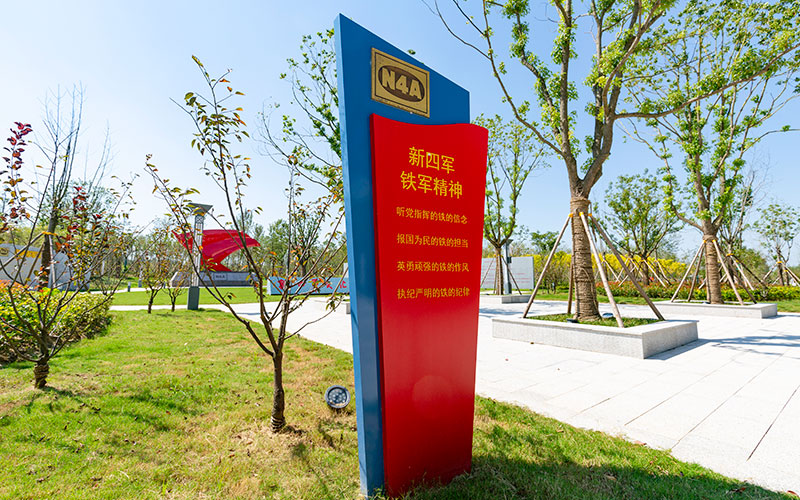 新四軍文化林,位于鹽城經(jīng)濟(jì)技術(shù)開發(fā)區(qū),北起團(tuán)結(jié)河,南至鹽瀆路,東側(cè)毗鄰鹽城市委黨校,西至通榆河河坎,總面積315畝,總投資約1億元,已于2021年4月竣工。新四軍文化林以自然林帶為背景,鐵軍文化為核心,整合四季景觀,追憶新四軍英雄史詩,通過“聽黨指揮、報(bào)國為民、英勇頑強(qiáng)、戰(zhàn)地黃花、執(zhí)紀(jì)嚴(yán)明、經(jīng)濟(jì)建設(shè)、團(tuán)結(jié)統(tǒng)戰(zhàn)、旌旗獵獵”八大版塊,以人物故事、感人事跡串點(diǎn)成線,通過開放、共享的休閑觀光形式向廣大市民和培訓(xùn)學(xué)員宣傳新四軍鐵軍精神和鐵軍文化,從革命歷史中感悟和汲取鐵軍精神的強(qiáng)大力量,以樹為碑銘記初心,以林為魂啟迪后人。