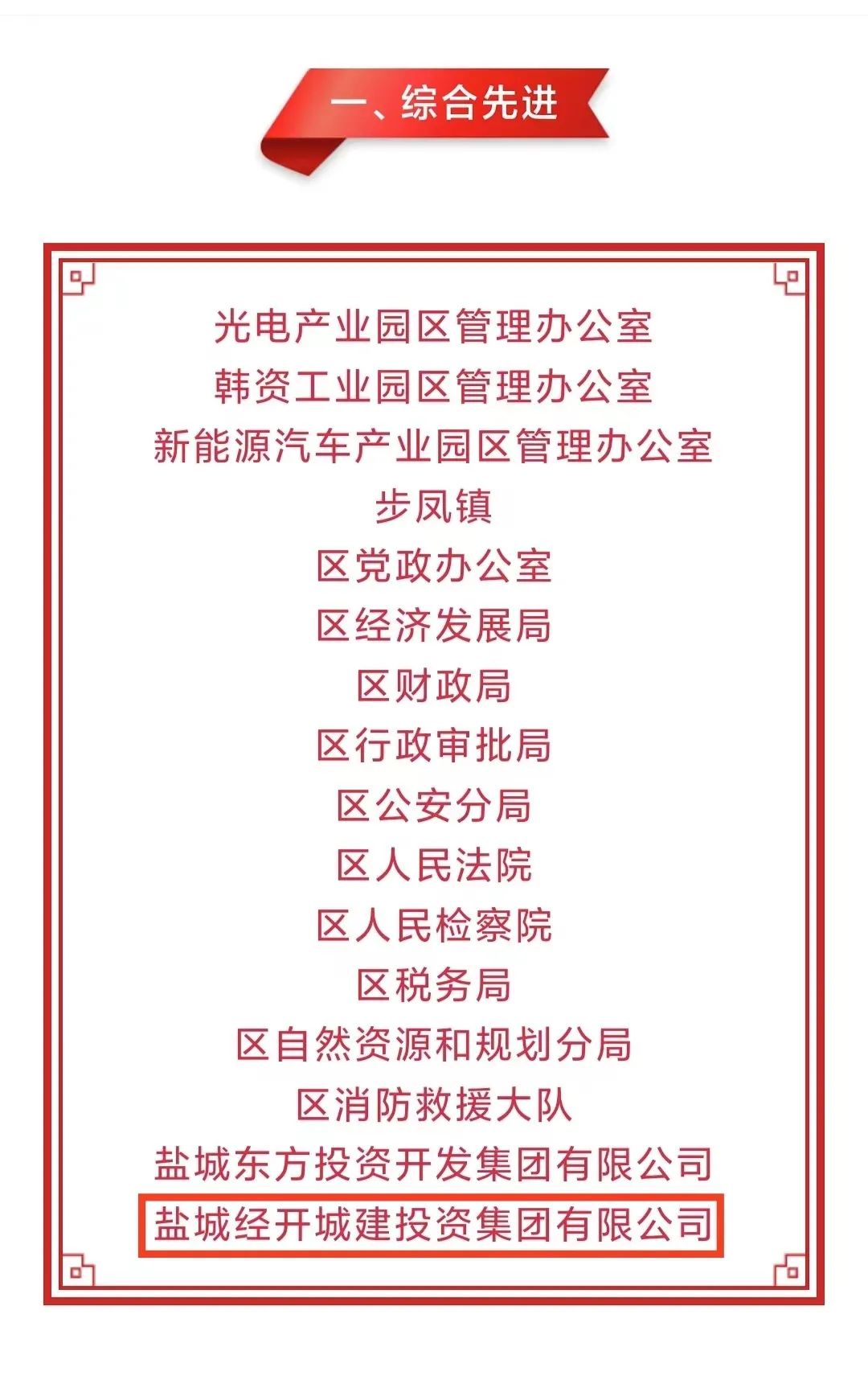 此次榮譽(yù)的獲得是區(qū)黨工委、管委會(huì)對(duì)集團(tuán)2022年度工作的充分肯定。近年來,鹽城經(jīng)開城投集團(tuán)全面落實(shí)區(qū)黨工委、管委會(huì)的各項(xiàng)決策部署,牢牢把握國(guó)有企業(yè)定位,務(wù)實(shí)重干,主動(dòng)作為,推動(dòng)項(xiàng)目建設(shè)提速加碼、經(jīng)營(yíng)效益更加優(yōu)質(zhì)、人才隊(duì)伍不斷強(qiáng)化、黨的建設(shè)持續(xù)提升,各項(xiàng)工作取得新成效。