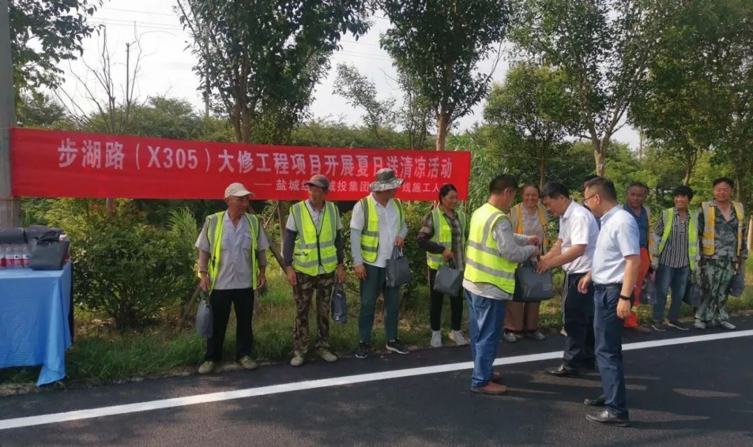 今夏氣溫節(jié)節(jié)攀升,暑氣日盛。為切實(shí)做好夏季防暑降溫工作,保障一線施工人員健康安全,8月1日上午,鹽城經(jīng)開城投集團(tuán)副總經(jīng)理張志軍帶隊(duì),依次前往鹽城經(jīng)開區(qū)環(huán)衛(wèi)基礎(chǔ)設(shè)施、2024年步湖路大修、2024年農(nóng)村道路臨水路段防護(hù)、2024年口袋公園等項(xiàng)目現(xiàn)場,開展“夏日送清涼”活動(dòng),慰問一線施工人員。